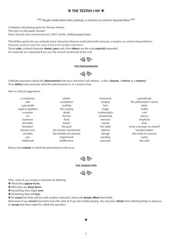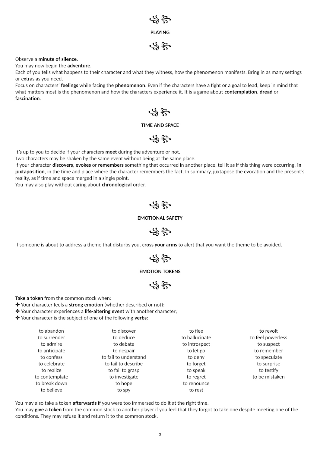 ༺ A fateplay role-playing game to embody persons facing a beauty, a mystery or a horror beyond them ༻